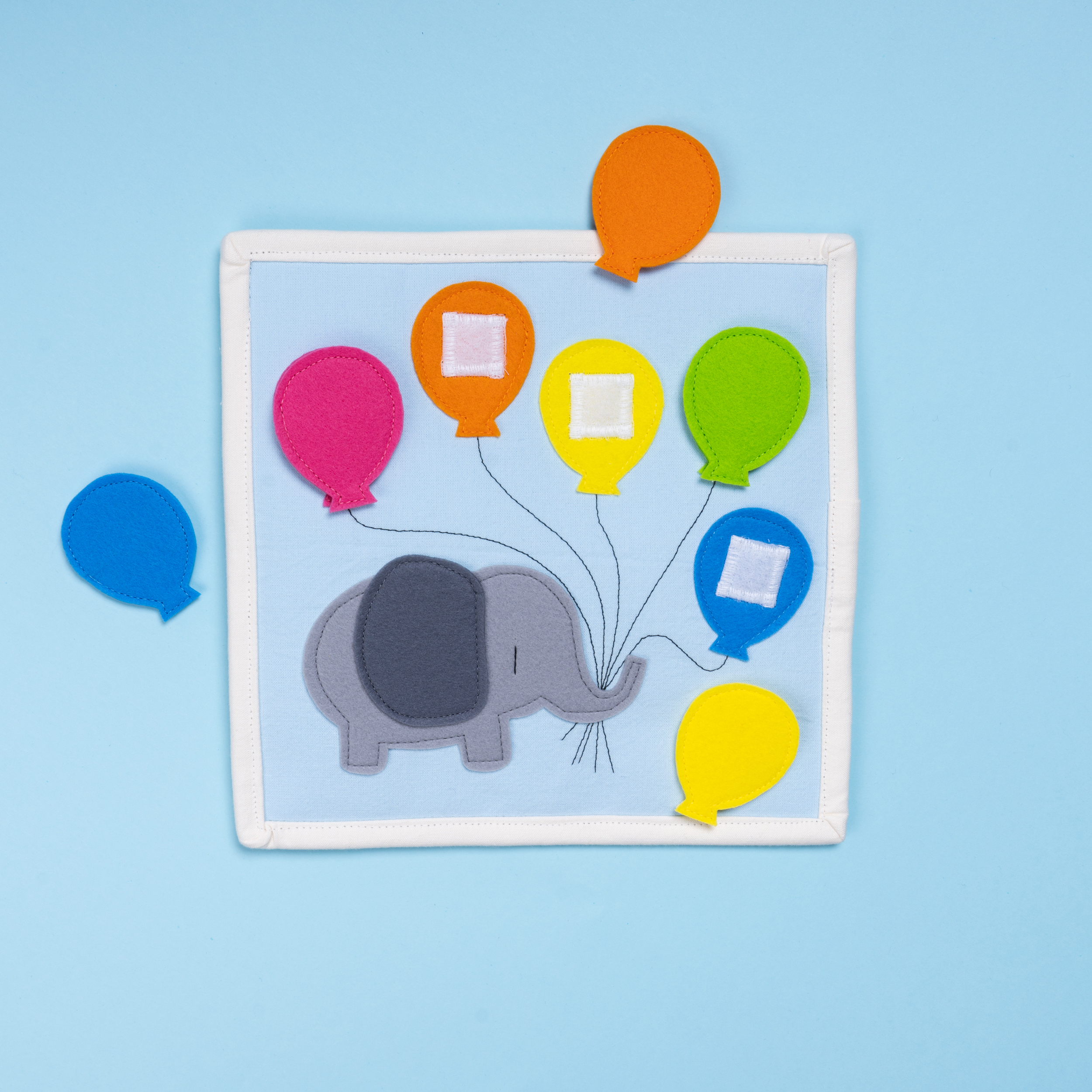 L’elefantino con 5 palloncini tenuti ben stretti con la proboscide, aiutalo a non perderli e attaccali al loro corrispondente colore. Questa attività aiuta a sviluppare il ragionamento logico, la coordinazione oculo manuale e la presa a pinza, attraverso il riconoscimento dei colori e l’associazione degli stessi. Insieme al genitore il bambino può ripetere ciascun colore, favorendo così anche lo sviluppo del linguaggio e delle memoria.